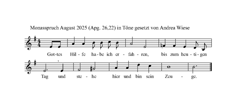 Wie in jedem (Arbeits-)Leben gab es auch herausfordernde Zeiten. Und jetzt kommt der (August-)Monatsspruch… “Gottes Hilfe habe ich erfahren bis zum heutigen Tag und stehe nun hier und bin sein Zeuge” (Apostelgeschichte 26,22)